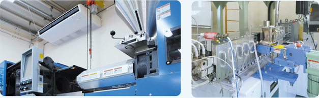 私たちは日々、高機能樹脂の開発に取り組んでいます。最新のラボ機(小型二軸押出機)、各種測定機器を取り揃え、スピーディな配合設計でお客様のご要望にお応えします。また、ラボ機を使った少量試作のみでも承ります。
